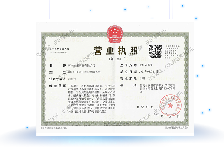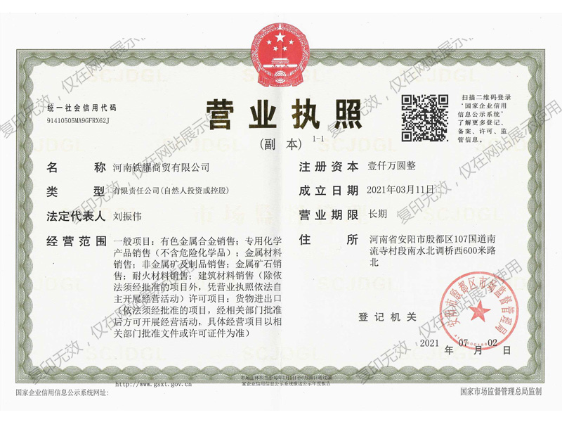 我們珍惜今天所取得的成就,也不會忘記我們的責任和義務(wù)。河南鐵耀商貿(mào)有限公司竭誠歡迎各位朋友蒞臨參觀指導,并希望能與社會各界朋友真誠合作,共謀發(fā)展。